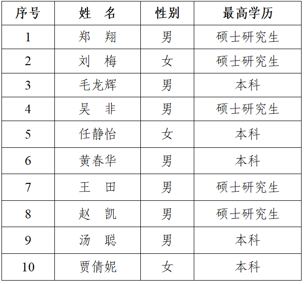 根据安徽省投资集团控股有限公司2025年春季社会招聘工作方案和有关制度要求,经过资格审查、考试、体检、考察(背景调查)等程序,确定郑翔等10人为安徽省投资集团控股有限公司2025年春季社会招聘拟聘人选(第二批),现面向社会进行公示。公示期自2025年6月18日至2025年6月24日止。如有问题,请于公示期间的工作时间(工作日上午9:00-12:00,下午14:00-17:30)进行反映,监督电话:0551-62779046,监督邮箱:jiwei@ahinv.com,联系地址:合肥市包河区望江东路46号安徽投资大厦。具体名单如下: