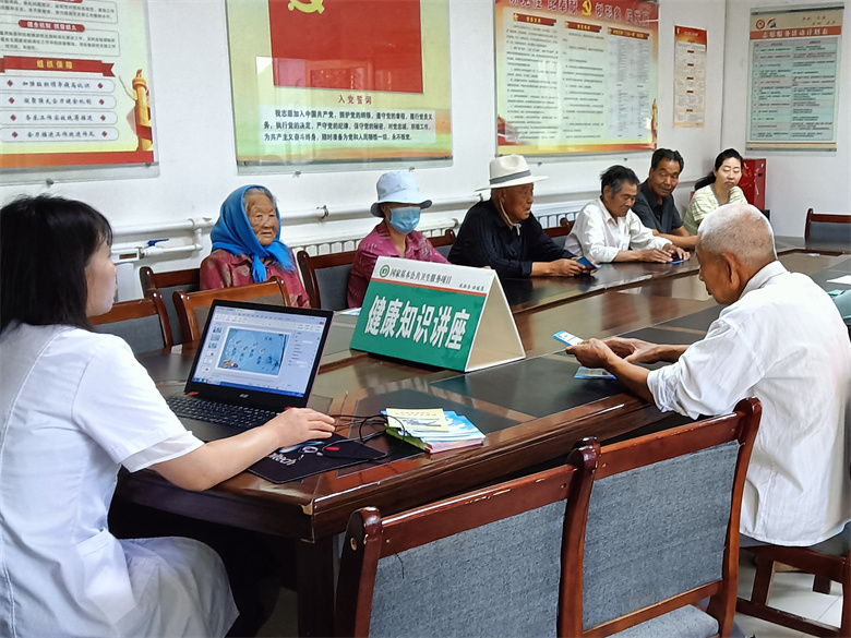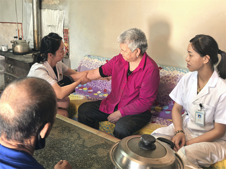 入户随访暖人心,精准服务零距离。家庭医生服务团队深入各村开展“敲门行动”。针对行动不便老人,提供上门测血压、测血糖服务,了解日常生活和用药情况,完善健康档案,制定“一人一策” 健康管理计划。服务过程中,家庭医生同步开展健康知识宣教与护理技巧指导,实现从疾病治疗到健康管理的全程守护。
