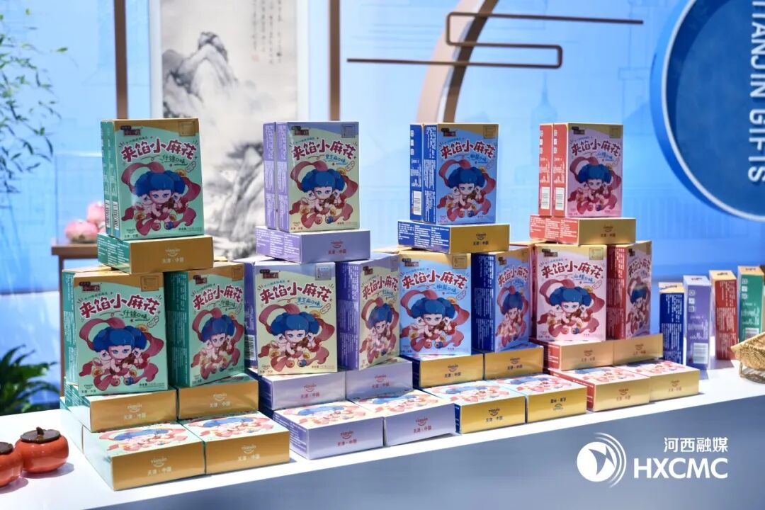 在天津礼物展示区,桂发祥精心打造的哪吒系列夹馅麻花,被作为专属“天津礼物”进行展示。Q版哪吒手持小麻花、眼神灵动,包装融合了国潮风格,活泼有趣,极具中国特色。