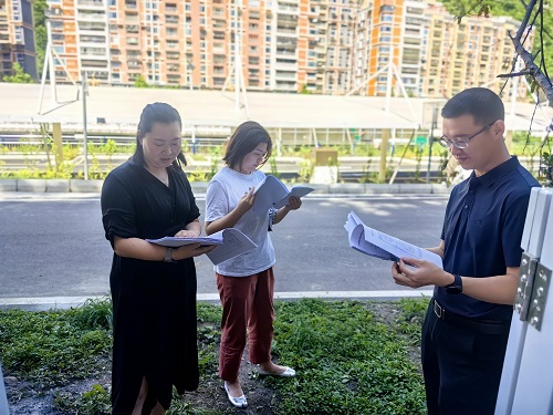 廖静姝一行实地勘察新建地下水环境监测井,重点检查地下水环境监测井保护设施和标志、周边环境状况,并对地下水环境监测井建设“一井一策”资料进行详细检查。