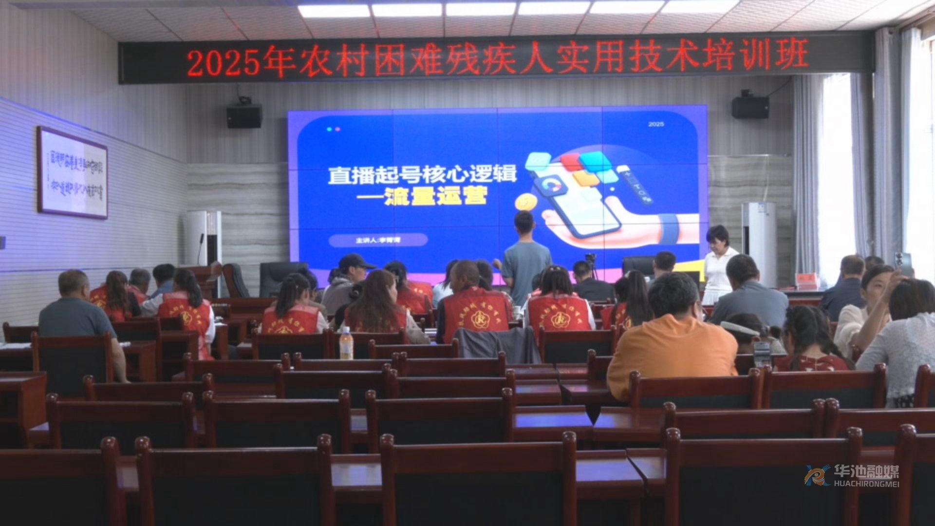 7月10日,华池县残联举办短视频制作和快手直播带货技能培训,来自各乡镇的60名残疾人参加培训。