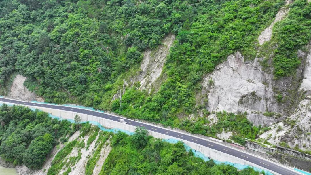 该项目沿原路改扩建,途经多个村庄,施工期间既要保障安全通行,又要确保工程有序推进,保通压力巨大;沿线地质条件复杂,分布7处地质灾害隐患点,高边坡、高临边施工步步惊心;尤其是夏季汛期泥石流频发,垮塌点位多达数十处,抢险工作风险高、难度大。面对这些挑战,项目团队科学规划,24小时轮班作业,严格遵循技术规范,在雨季和滑坡等不利条件下争分夺秒,啃下了这块“硬骨头”。
