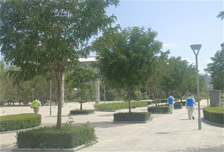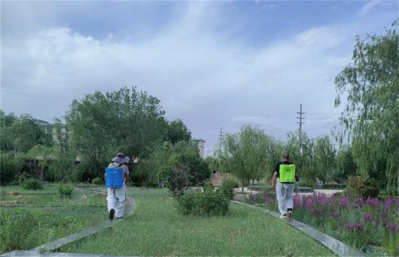 此次专项行动坚持“源头治理、科学防控”原则,采取“药物消杀+环境整治”双管齐下的模式,针对蚊蝇易聚集的公共区域开展集中治理。行动中,专业消杀队伍重点对湿地公园、水之印广场、西路军主题公园、月牙湖公园、垂钓园等重点区域的树荫区、湖边草丛、绿化带及城区主次干道隔离带进行全方位药物喷洒。此次灭蚊蝇行动使用环保生物药品灭杀虫卵和成虫,从源头阻断蚊蝇孳生链条。