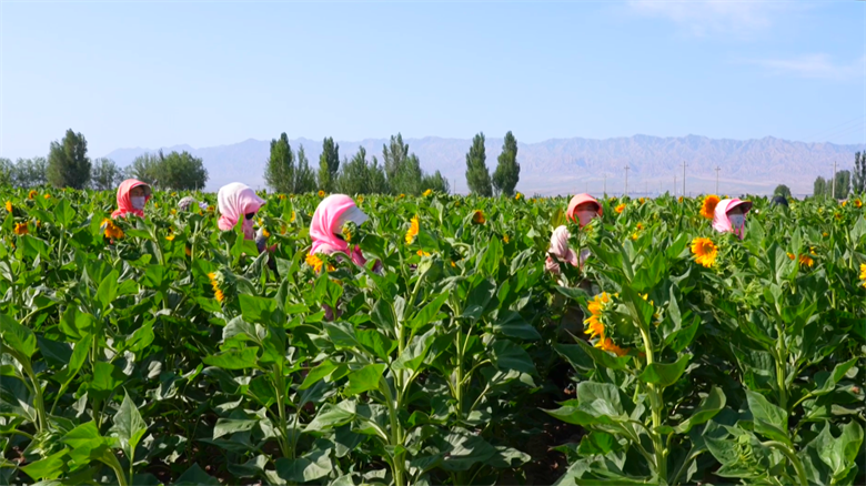 连日来,高台县万亩葵花迎来盛放期,种植户抢抓农时,传授花粉,田间地头一派“花繁叶茂人忙碌”的景象。