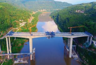 7月24日,镇广高速通广段白衣巴河特大桥右幅中跨顺利实现高精度合龙。