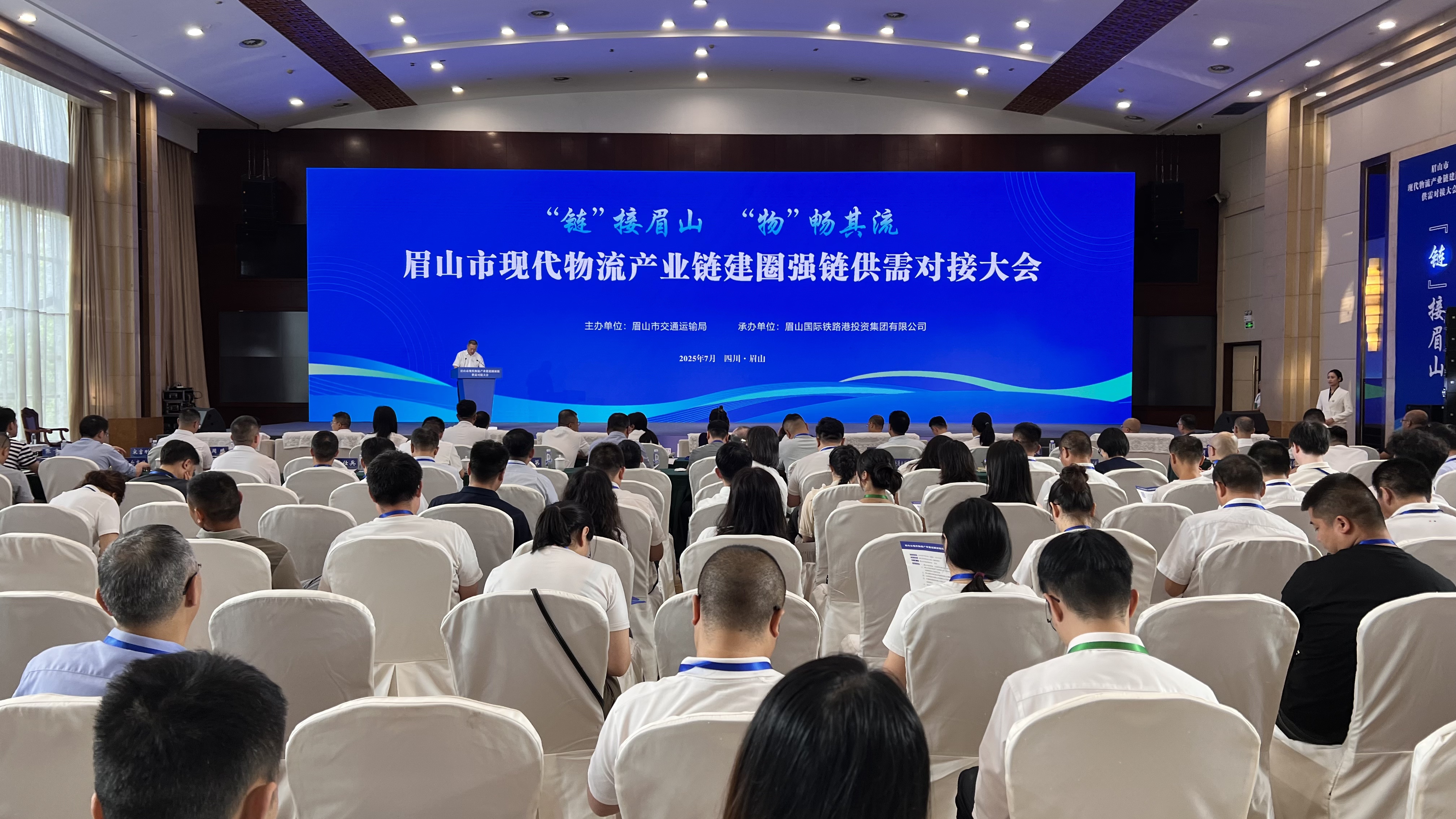 7月24日,“链”接眉山,“物”畅其流——眉山市现代物流产业链建圈强链供需对接大会召开。此次大会由眉山市交通运输局主办,眉山国际铁路港投资集团有限公司承办,以牵线搭桥、合作共赢为宗旨,致力于为省内外物流企业与本市“1+3”主导产业为主的重点企业搭建对接交流平台,为全市经济社会高质量发展提供更有力的支撑。眉山市委常委、天府新区眉山党工委书记邹汝林出席会议并致辞,市人大常委会副主任吴江、市政府副市长王岳、市政协副主席梅斌、市政府副秘书长王斌参加会议。