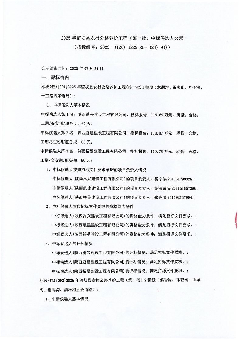 | 所在地区: | 陕西-汉中-留坝县 | 发布日期: | 2025年7月29日 |