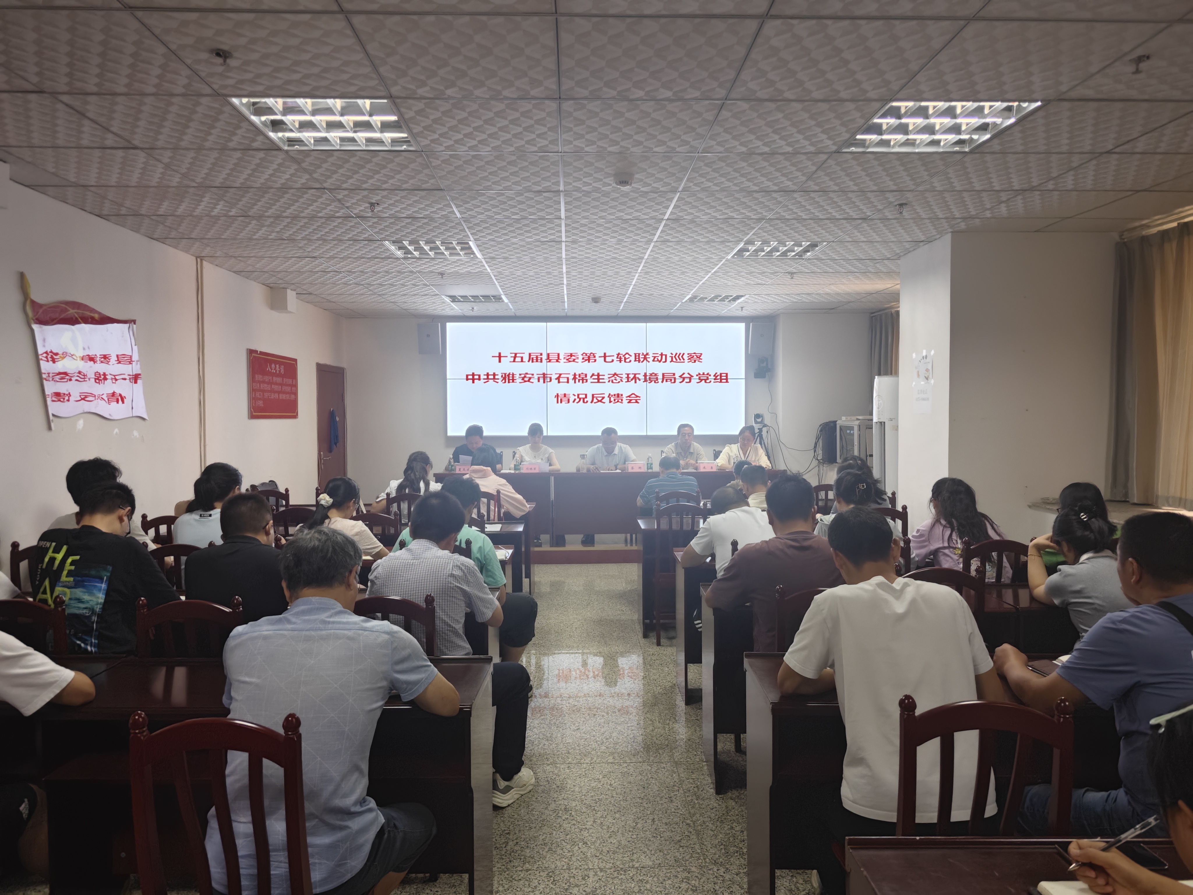 根据市委巡察的统一部署,近日,石棉县第十五届县委第七轮系统联动巡察中共雅安市石棉生态环境局分党组情况反馈会在雅安市石棉生态环境局召开。会前,石棉县委第一巡察组组长庞勇主持召开与中共雅安市石棉生态环境局分党组书记、局长夏天成的单独反馈会,传达石棉县委书记周船关于巡察整改工作的重要讲话精神。反馈会上,庞勇通报巡察情况和反馈意见,夏天成主持会议并做表态发言,石棉县委常委、统战部部长蔡珩出席会议并讲话。石棉县委第一巡察组副组长胡灵芝、周姝君及巡察组其他同志,石棉县纪委监委机关、县委组织部有关同志,雅安市石棉生态环境局全体干部职工参加会议。