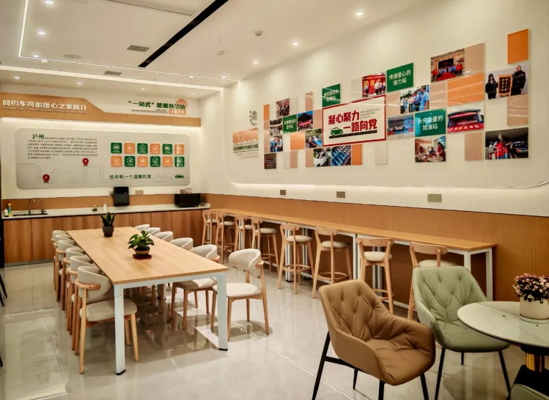 配备微波炉、热水、应急药箱等12项服务设施,提供行业期刊、电子书阅读及舒适休憩空间,让司机在接单间隙享受“热饭、热水、暖心”服务。
