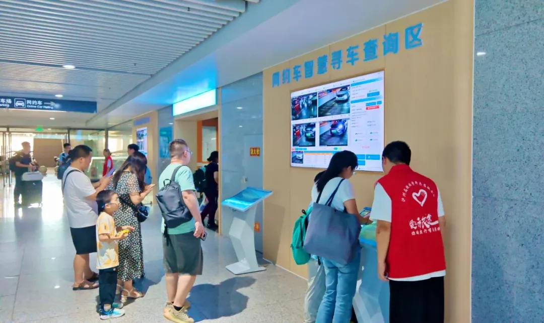 网约车候车区配备142个停车位,对合规的网约车司机提供免费停车服务,并引入智慧寻车引导系统,通过智能车牌识别技术实现车辆精准定位,旅客可通过车牌或车位号快速查询车辆位置,彻底解决“排队上车、通行低效”难题。此外,临时休息区、充电座椅、热水供应等设施,进一步优化了司机及旅客的候车体验。试运行期间,系统操作便捷、响应灵敏,获广泛好评。