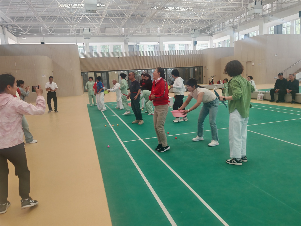近日,高台县工人文化宫内人声鼎沸,热闹非常,城关镇新建东村社区“彩虹张掖·籽籽同心”全民健身运动会正在党员干部及群众积极参与下有序开展。