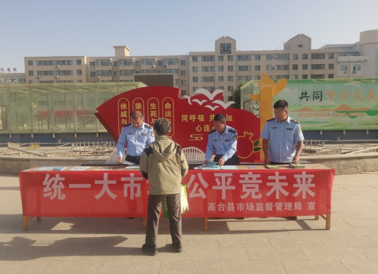 为进一步提高社会各界对公平竞争政策的知晓度和认知度,近日,高台县市场监管局在中心广场组织开展以“统一大市场,公平竞未来”为主题的公平竞争政策宣传活动。