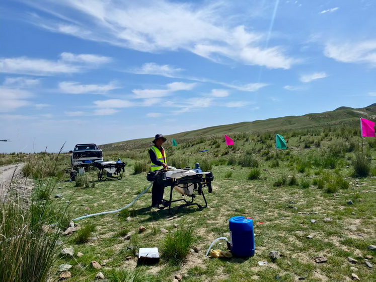 绿色防控,守护草原生态安全。鼠虫防治坚持绿色防控原则,采用生物防治手段,合理选用高效、低毒、低残留的生物制剂,针对鼠虫高密度区域,采用飞机防治为主、地面防治为辅的立体化防控策略,二者相结合的方式精准施药防治,提高防治覆盖率和效率,维护草原生态环境安全。
