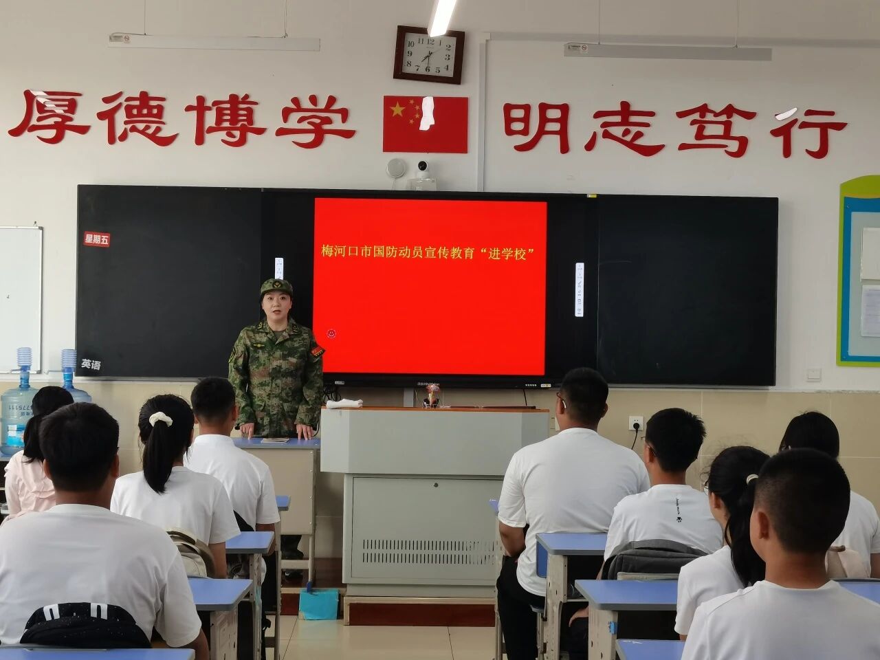 为纪念中国人民抗日战争暨世界反法西斯战争胜利80周年,加强青少年的国防教育和爱国主义教育,近日,梅河口市国防动员办公室联合梅河口市第五中学开展宣传教育“进学校”活动。