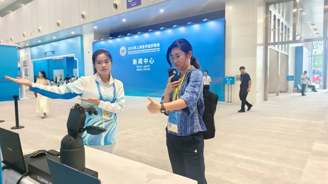 2025年上海合作组织峰会新闻中心于8月28日起正式开放,中外媒体记者陆续抵达开展报道工作。现场,智能产品格外亮眼,吸引了众多媒体记者的驻足体验。