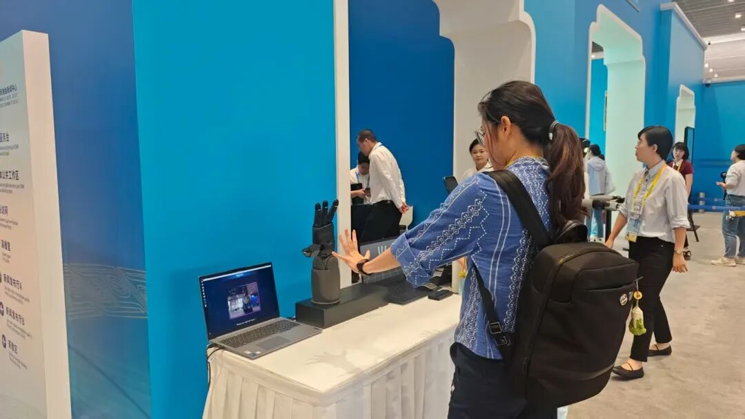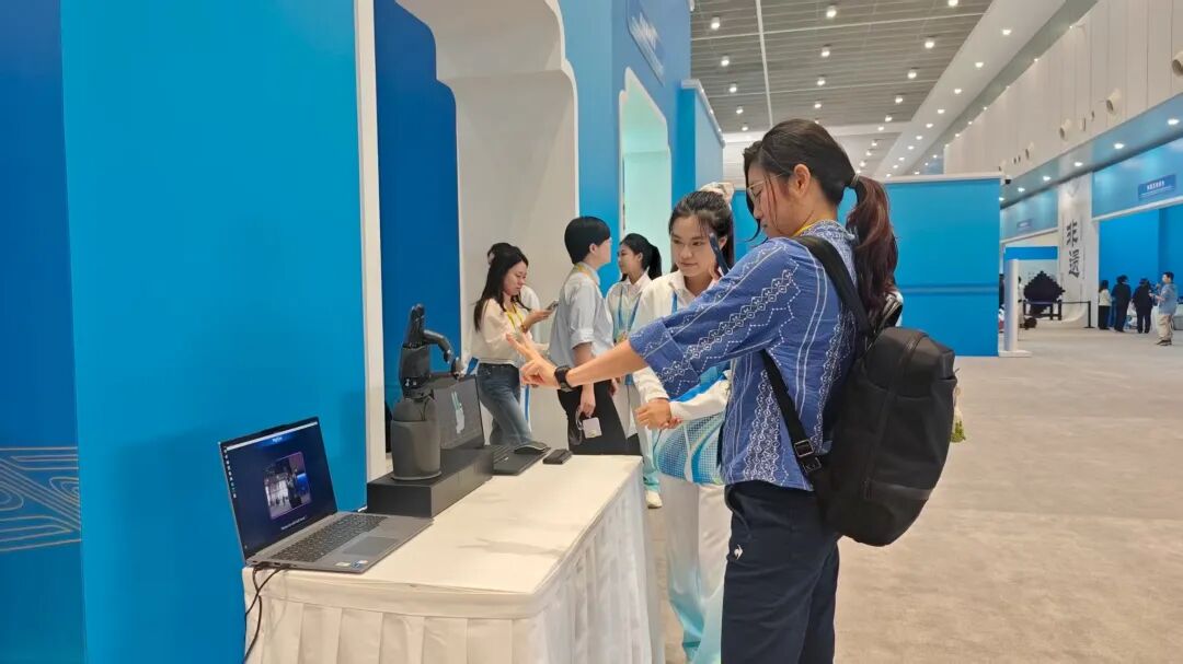 在科技文化互动展示区,帕西尼感知科技带来的“灵巧手”与多款机器人成了焦点,吸引中外记者纷纷驻足。一位阿塞拜疆记者走到多维触觉灵巧手DexH13 前,做出抓握等一连串手势,这只黑色的“手掌”即刻同步响应,引得周围镜头纷纷对准这“人机同步”的奇妙瞬间。“它能模仿人类手指运动逻辑,支持抓、握、捏、按等多种精细动作,能让机器人在复杂精细场景中实现持久稳定的灵巧操作。”帕西尼相关负责人介绍道。 一旁,快递分拣机器人也在有条不紊地忙碌着。只见机器人准确地抓取包裹,根据内置相机扫描获取的信息,将包裹迅速分类投放到指定位置,整个过程一气呵成。DOUBLE ONE人形机器人同样吸引大家驻足,身形灵活的机器人不停地模拟着各种任务。据工作人员介绍,这款机器人在技术架构、算力支撑和性能参数上均有迭代,通过性与功能性进一步优化,未来有望在工业智能制造、公共安检、智慧物流等多领域落地应用。