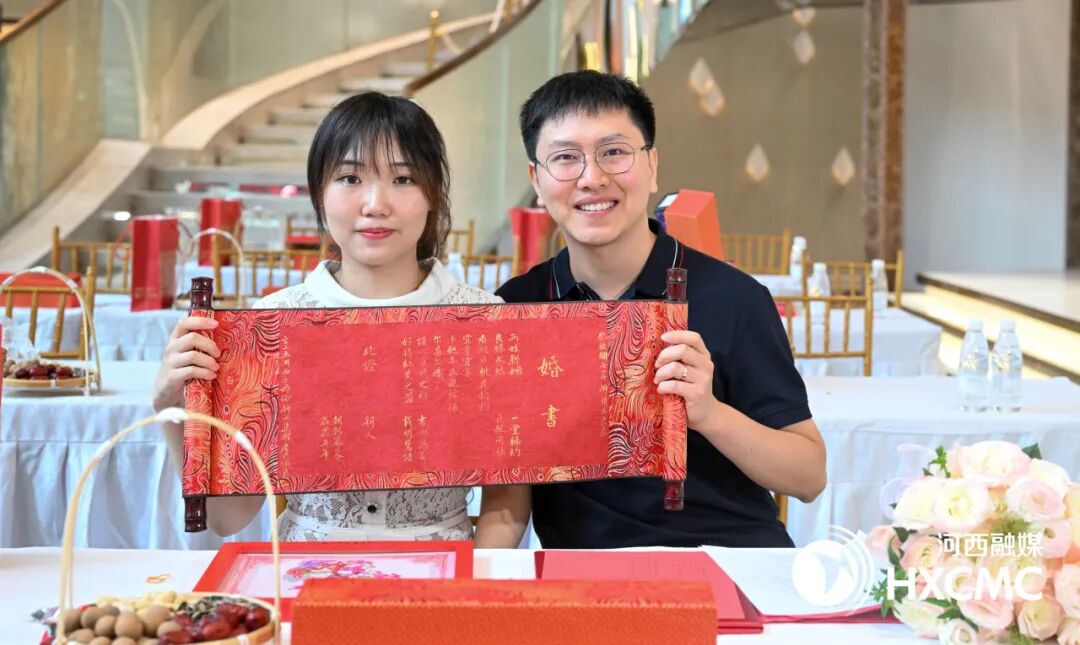 在典雅的乐声中,新人们领取了手绘婚书与定制非遗伴手礼,誓言诵读与婚书赠予让现场充满仪式感与庄重感。新婚伴侣代表在发言中讲述了从相识到相守的浪漫历程,寄语现场新人以爱为底色、以责任为纽带,共同经营温暖幸福的小家庭。