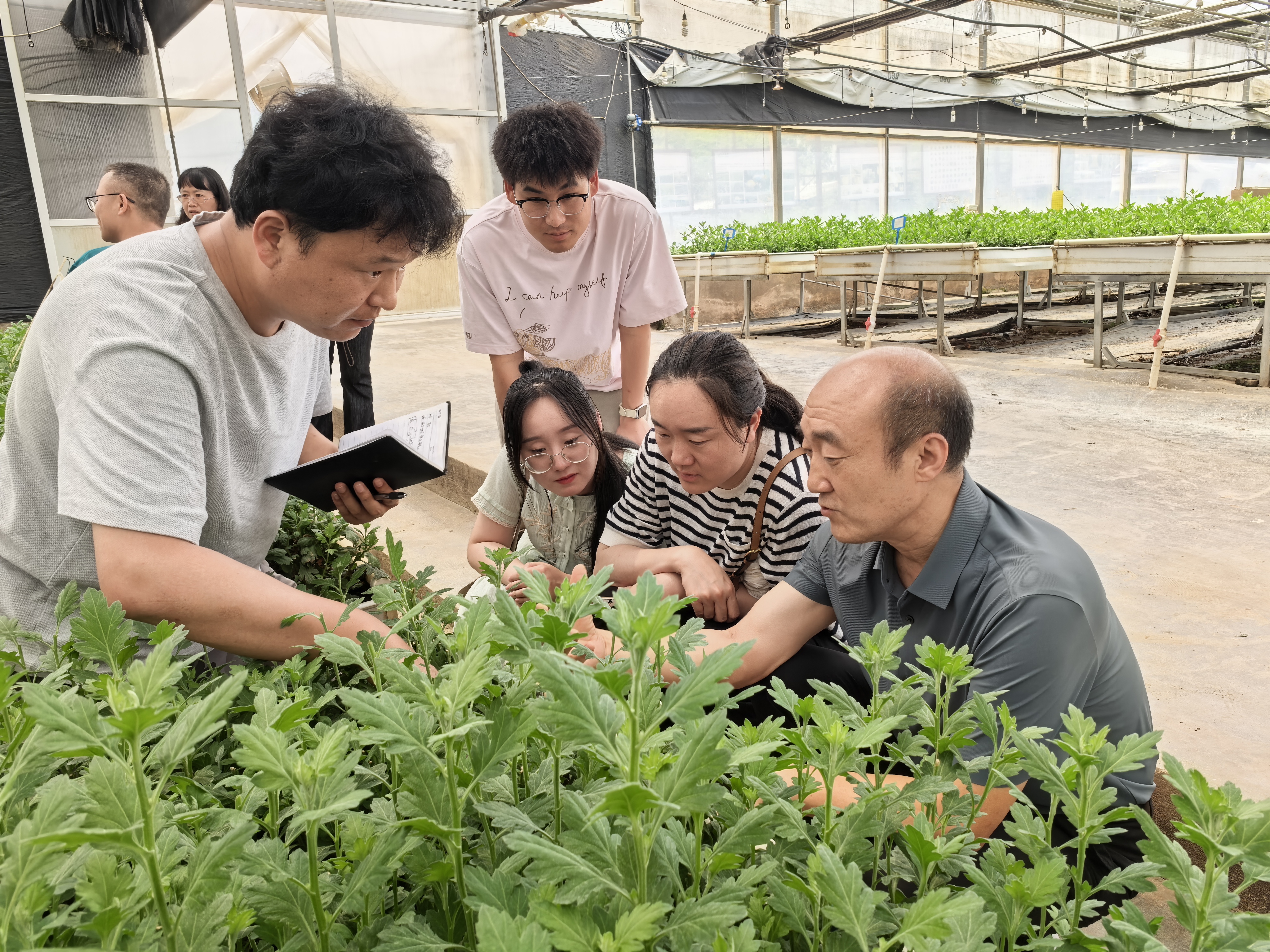 昆明虹之华园艺有限公司专注菊花育种、种苗生产及鲜切花领域,是行业内的领军企业。宋志伟教授与企业能工巧匠针对设施菊花生产中的基质配比、水肥一体化、病害防治等核心技术,对教师团队开展现场教学指导,强调要将企业技术标准全面融入课程体系与新形态教材。期间,教师们还观摩了湖南农科院育种专家在该企业开展的菜薹加代育种授粉工作,宋教授借此鼓励青年教师传承育种家的科学精神,深耕作物育种领域。