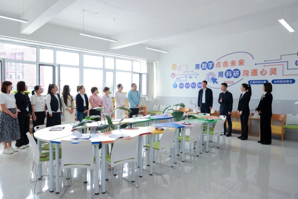在育才中学,朱欢看望慰问正在进行教科研讨的一线教师们,为他们送上节日祝福,祝愿大家节日快乐、工作顺利。