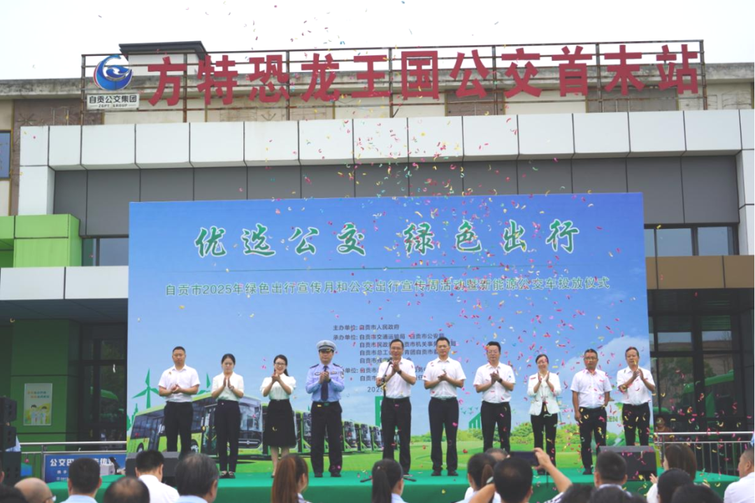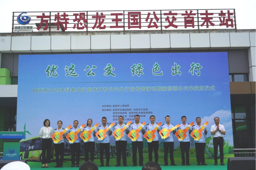 秋高气爽,丹桂飘香。9月26日,自贡市2025年绿色出行宣传月和公交出行宣传周活动暨新能源公交车投放仪式在方特恐龙王国公交首末站举行。活动旨在推动“优选公交、绿色出行”理念深入人心,加快城市绿色交通体系建设,助力自贡打造高品质宜居宜业幸福名城。自贡市政府副市长韩明祝出席活动,市政府副秘书长林映红主持活动,市级相关部门领导、市民代表及公交员工代表共同见证这一重要时刻。
