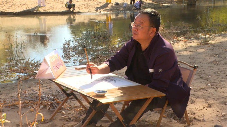 活动现场完成的水墨小品各具特色,有的着重表现胡杨的铮铮铁骨,有的精心描绘秋叶的绚烂多彩。这些作品不仅记录了自然之美,更通过艺术的语言,让游客在欣赏胡杨秋色的同时,感受到传统文化与地域特色碰撞出的独特魅力。“我们组织这次写生雅集,想让书画家走进自然,用作品展现高台胡杨的生态之美和地域文化,也希望让更多人接触传统书画,让艺术真正走进大众生活,为双节增添文化味儿。”高台县美术馆副馆长杨国志表示。