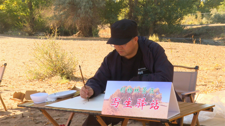 写生活动不仅吸引了艺术爱好者,更让前来游览的游客获得意外惊喜。不少游客驻足观看,用手机记录创作过程,甚至与书画家们交流艺术心得。“本来是冲着胡杨秋色来的,没想到还能碰到写生活动,这趟国庆中秋之旅比预想的更有收获!”游客杨海东赞叹道。