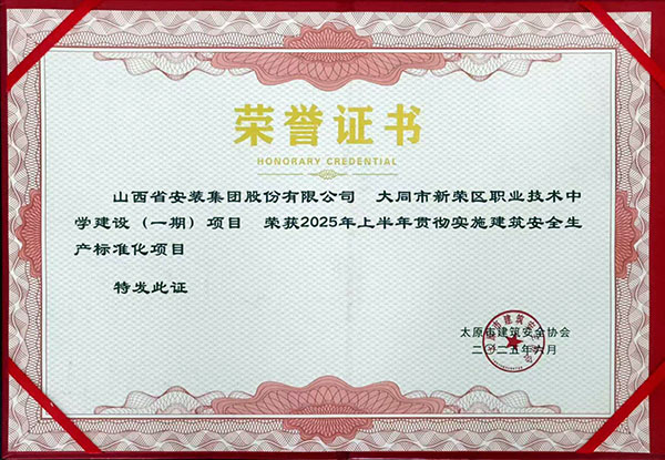 9月26日,第四工程公司大同市新荣区职业技术中学建设(一期)项目荣获“2025年上半年贯彻实施建筑安全生产标准化项目”称号。