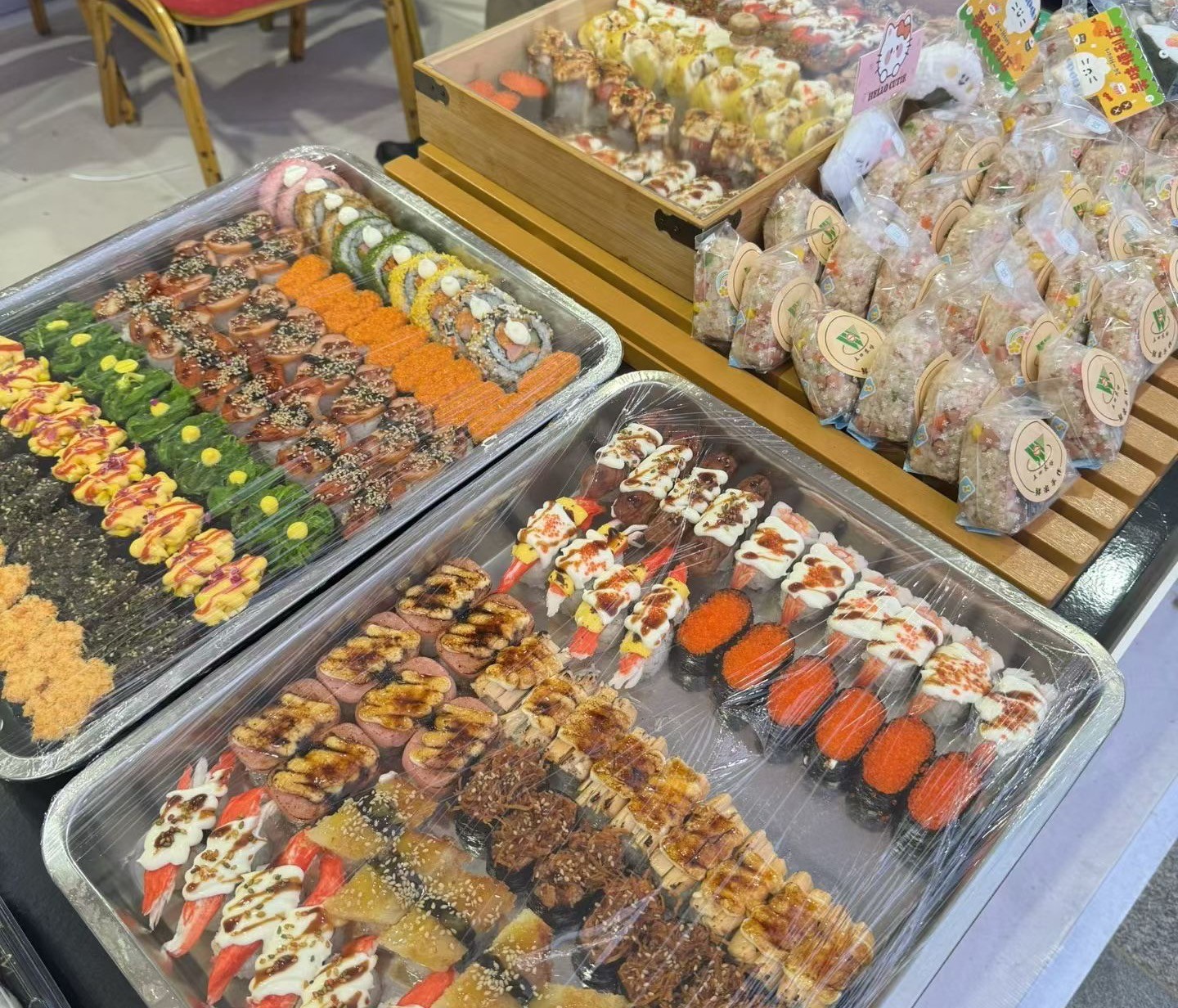 活动以“越光米”品质为基础,打造多元化食用场景,推出三大类特色衍生品丰富体验。经典日式风味板块,以越光米制作的寿司凭借米香浓郁、口感软糯成为热门体验品,紫菜包饭、寿司饭团则因便携、贴合大众口味吸引大量游客购买。潮流饮品品类中,创新研发的“越光米乳茶”融合米香与茶香,成为年轻群体打卡热点,助力品牌年轻化升级。休闲零食文创类不仅引入零食如烤肠等丰富产品内容,大米形象玩偶挂件也深受年轻消费者喜爱。