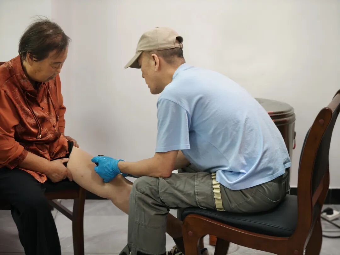 一位宝妈反映近期频繁头晕,经志愿者细致检查后,为其进行了二十分钟颈部推拿,颈椎不适得到显著缓解。活动现场同步提供血压测量、热敷理疗等多项服务,为春天社区居民打造了全方位的康养体验。