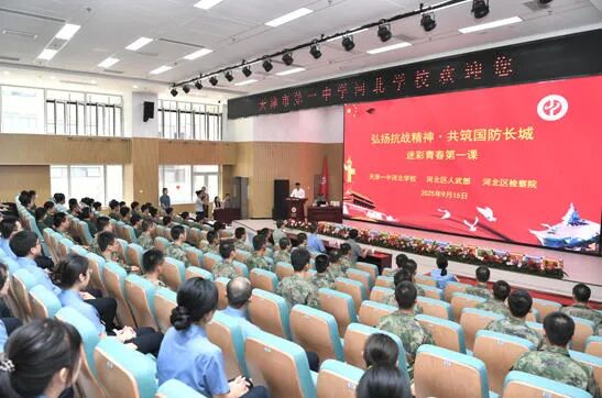 在开学第一课上,检察官为学生讲述法治课程,内容包括国家安全法、国防教育法等法律,教育引导同学们强化法治意识,树立正确价值观。在军训开启的第一课上,河北区人武部邀请武警天津总队原政治部主任陈强开展主题为“弘扬抗战精神·共筑国防长城”的国防教育宣讲,通过讲述我国国防力量的发展和现状,增强学生的国防观念,激发了大家的爱国热情。陈强同志强调,我们的和平来之不易,要铭记历史、珍爱和平,矢志不渝、忠贞爱国。