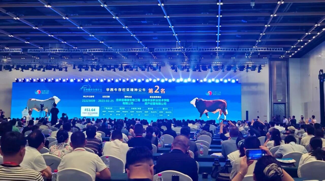 论坛发布了生猪、奶牛、肉牛遗传评估优秀种畜,我校种畜技术研发中心自主培育的种公牛凭借卓越的遗传品质和综合性能,在全国种公牛遗传评估中脱颖而出,一举包揽华西牛基因组选择指数(GCBI)第1名、第2名,西门塔尔牛选择指数(CBI)第1名的优异成绩,充分彰显了云南在现代畜禽种业创新领域的强劲实力与深厚积淀,为构建具有中国特色的现代肉牛种业体系贡献了可复制、可推广的“云南经验”。