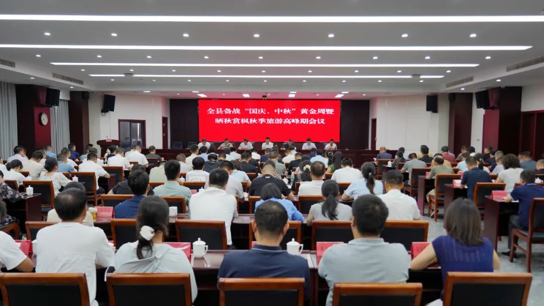 9月23日,全县备战“国庆、中秋”黄金周暨晒秋赏枫秋季旅游高峰期会议召开。县委副书记、县长王庆辉主持并讲话,县领导胡春明、胡健、俞刚、金泽安、张国旺、方良福出席。