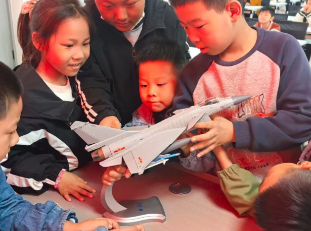 “流线型设计能减少30%的空气阻力。”航空模型科技原理讲解环节,让“国之重器”不再是课本上的抽象概念,成为孩子们可感知、可触摸的强国见证。这场互动宣讲,将“科技自立自强”的种子播撒进少年心田,让爱国情怀与科学精神同频共振。