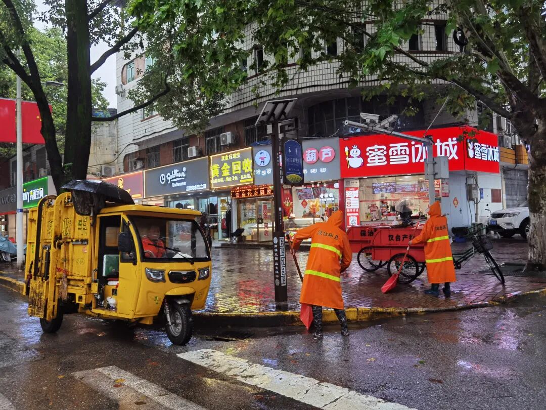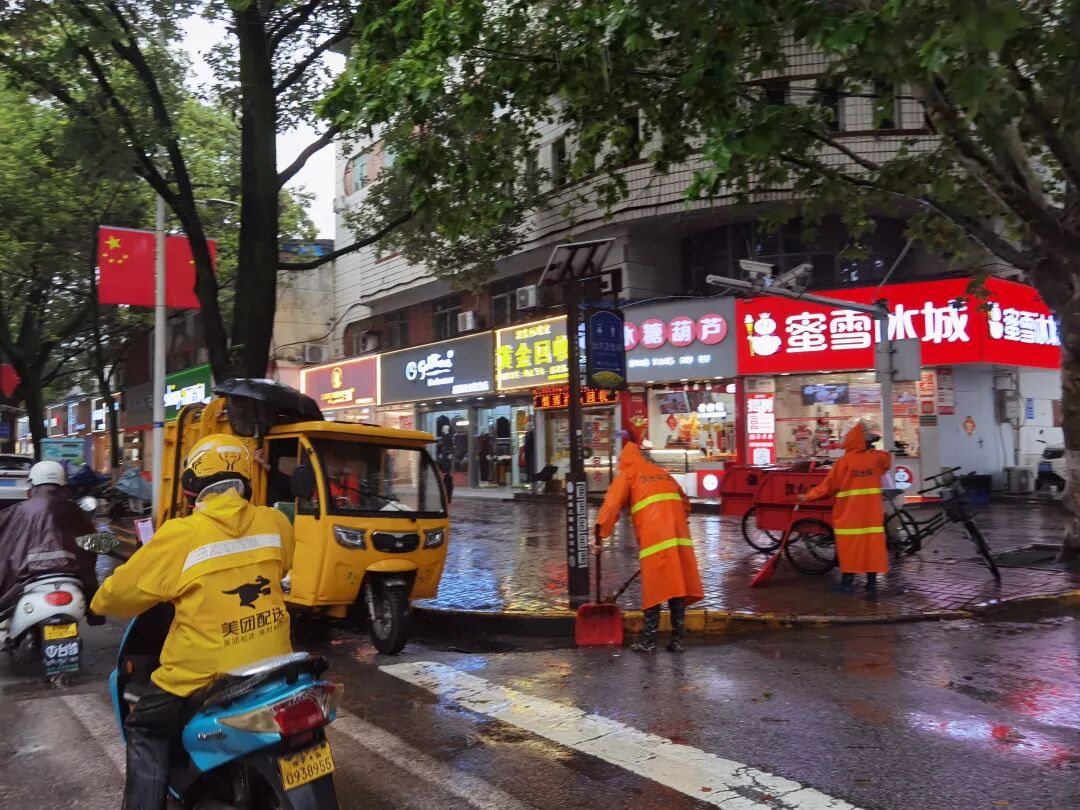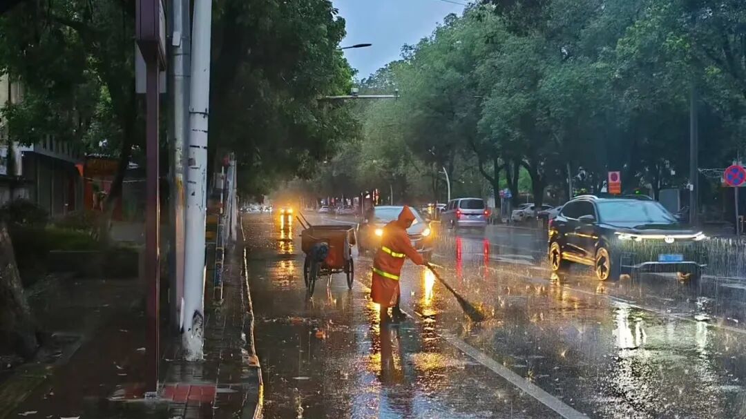 从清晨到午后,雨势时大时小,但这些城市守护者的身影始终活跃在街头巷尾。环卫工人的辛勤劳作,保证了雨停路净;执法队员的及时处置,确保了道路通畅。他们在大雨中坚守的背影,成为了这座城市最动人的风景,也筑起了一道坚实的“暖心防线”,赢得了过往市民的由衷点赞。