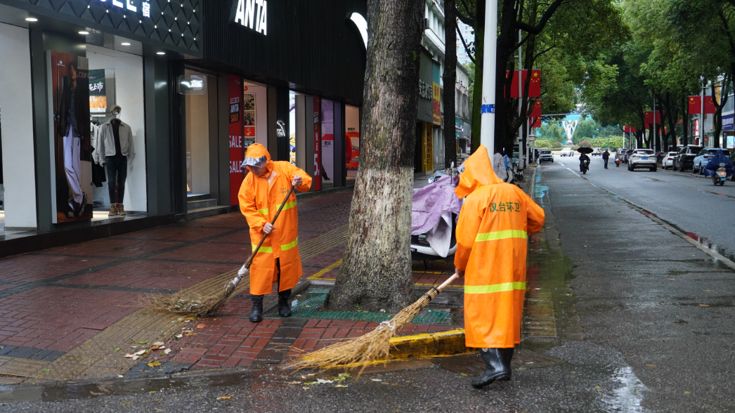 “雨越大,路面垃圾越容易被冲散,也容易堵塞下水口,必须及时清理。”吴凤利一边用力将被雨水泡湿的垃圾铲起,一边说道。下雨天清扫难度增大,街道上的落叶被雨水一泡,软塌塌地贴在路面上,扫帚扫过去,它们黏在地上不肯动,得用巧劲反复刮蹭,才能勉强拢到一起。风雨交加中,他们橙色的身影在空旷的街道上显得格外坚定。